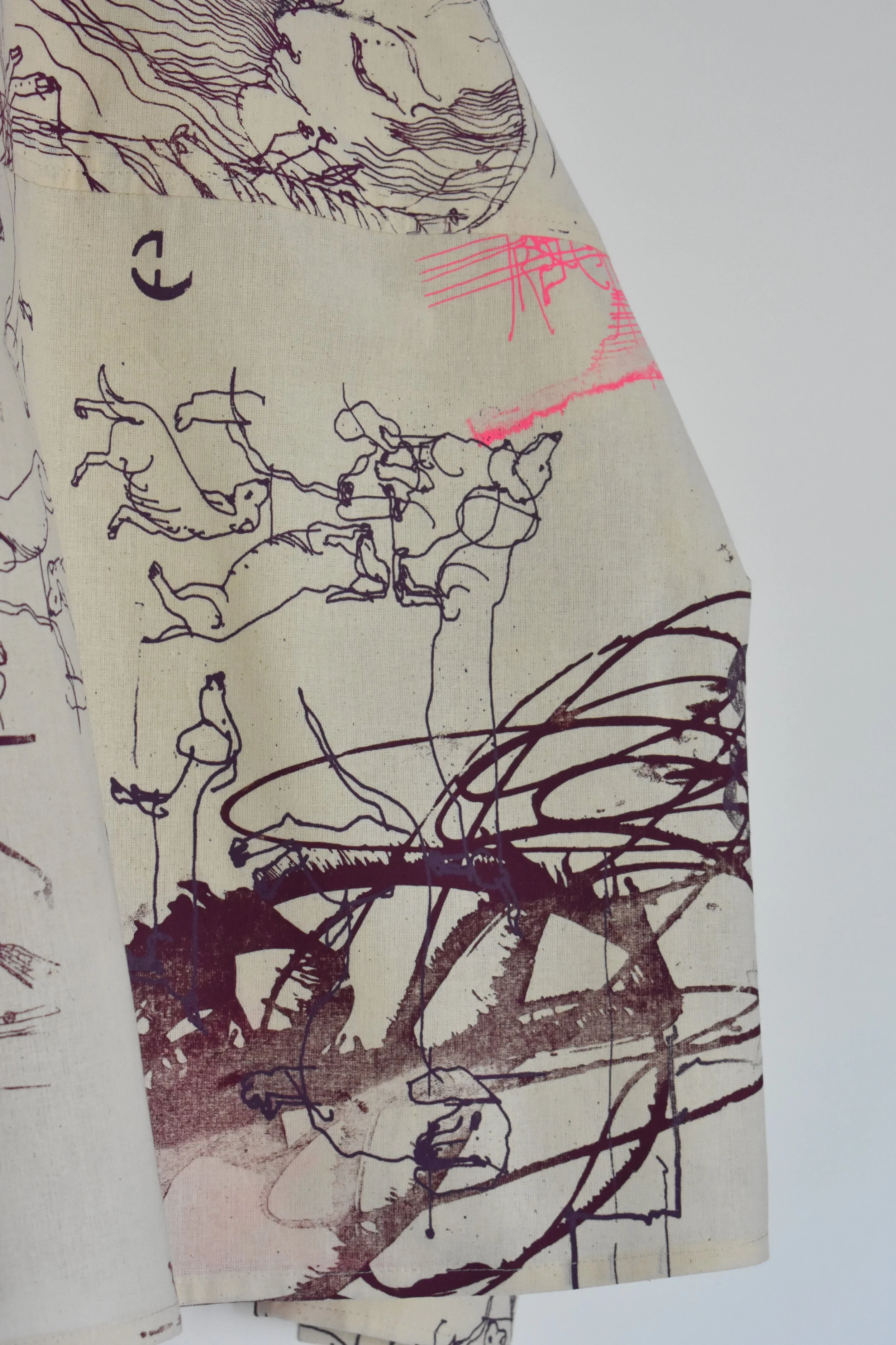 All of our designs are gender inclusive. Each garment is one of a kind and has a unique set of hand screen printed illustrations.